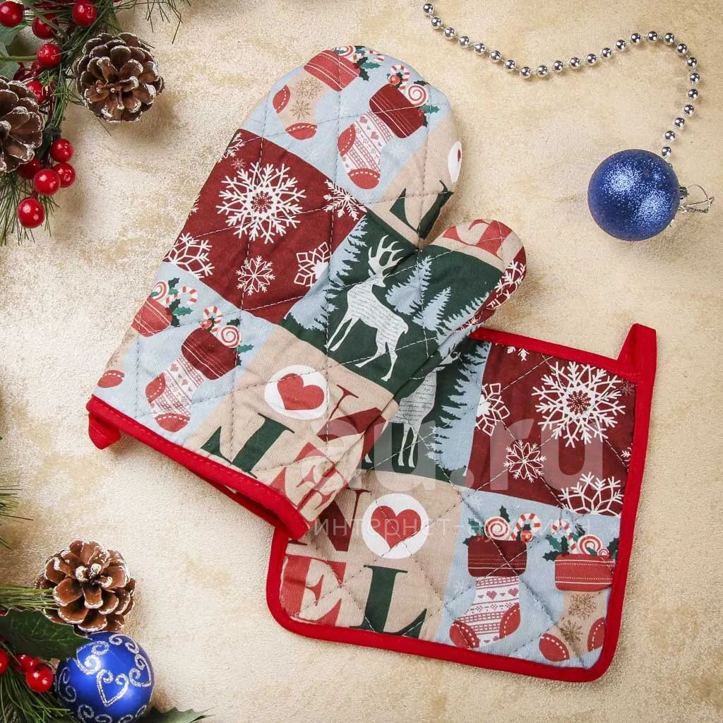 Набор кухонный 2 шт, 26х18см + 18х18 см (варежка, прихватка), 100% хлопок, Новогодняя гирлянда