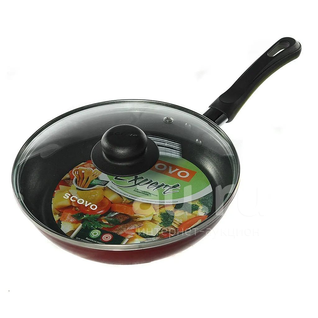 Сковорода алюминий, 24 см, антипригарное покрытие, Scovo, Expert, СЭ-028, с крышкой