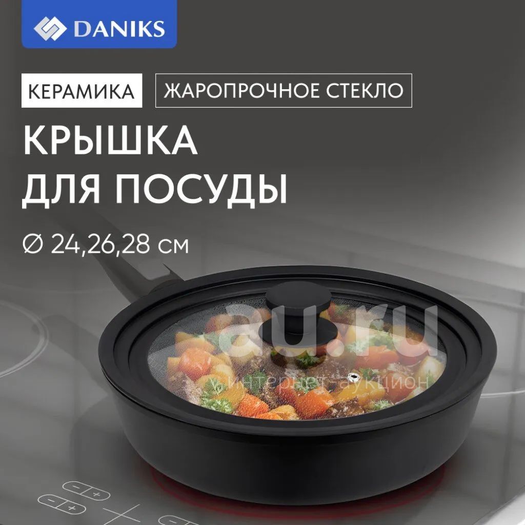 3 590руб.Крышка для посуды стекло, Daniks, кнопка силикон, черная, 24/26/28 см...