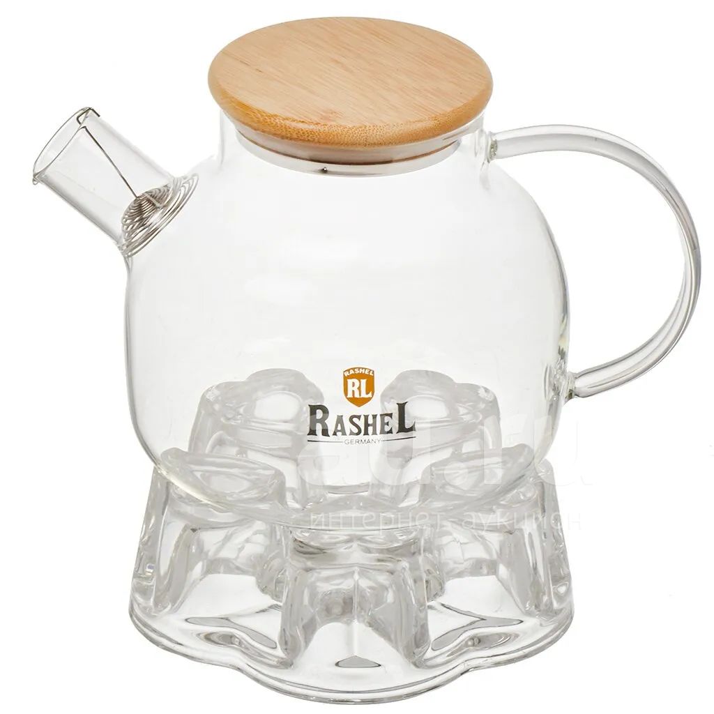 Чайник заварочный стекло, 1 л, с ситечком, с подставкой, RasheL, R8351