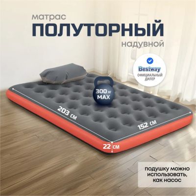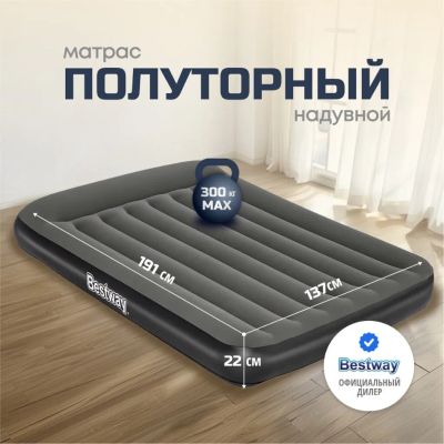 Матрас Bestway, выполненный из прочного флокированного винила, обеспечивает комфортный и здоровый сон в любых условиях. Его уникальная конструкция позволяет ему сохранять форму даже при неравномерном распределении нагрузки. Этот матрас легко надувать и сдувать, что делает его прекрасным выбором для путешествий или отдыха на природе. Кроме того, он может служить дополнительным спальным местом в квартире или доме. Если пространство ограничено, надувные матрасы становятся отличным решением для размещения гостей. Всё, что нужно сделать, - это надуть матрас и разместить его в свободной комнате.