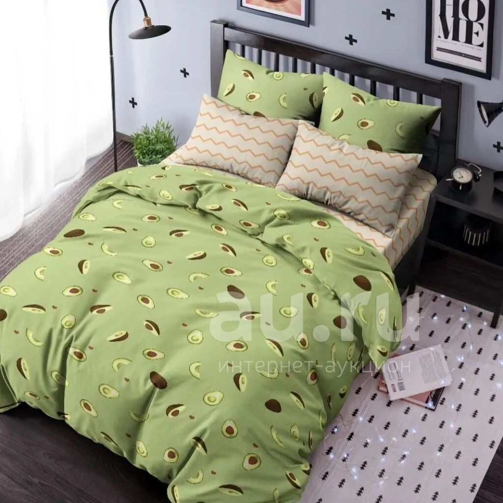 Постельное белье 1.5-спальное, простыня 150х214 см, 2 наволочки 50х70 см, пододеяльник 145х215 см, Ночь нежна, бязь, Авокадо