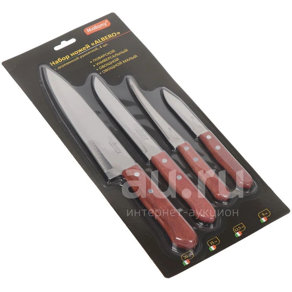 Набор ножей 4 предмета, 20 см, 15 см, 12.5 см, 9 см, нержавеющая сталь, рукоятка дерево, Mallony, Albero, 007092