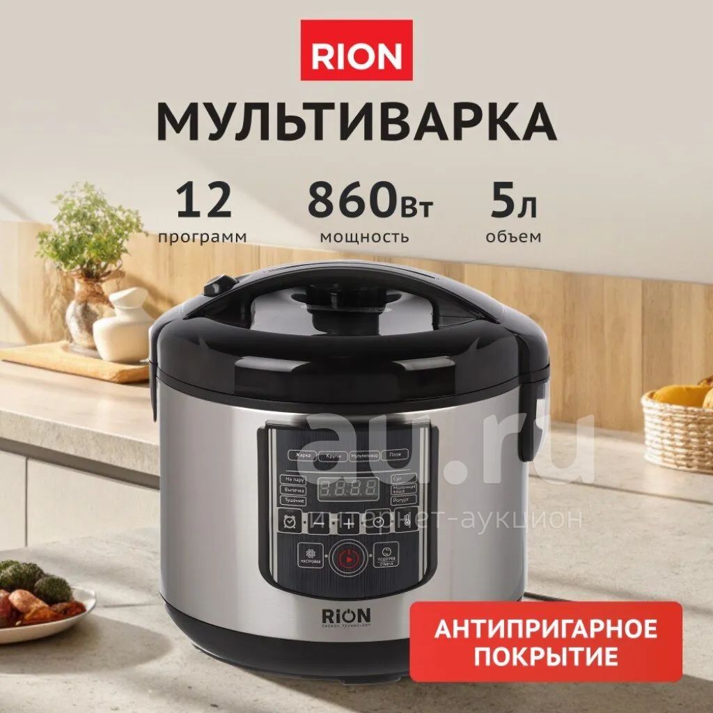 499руб.Мультиварка Rion, GB-MC38, 12 программ, 5 л, 860 Вт, тефлоновое покры...