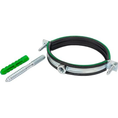 Хомут трубный — специализированный крепежный элемент, состоящий из двух соединительных частей, фиксирующихся винтами. Резиновая прокладка делает соединение более упругим и устойчивым к вибрациям и нагрузкам.