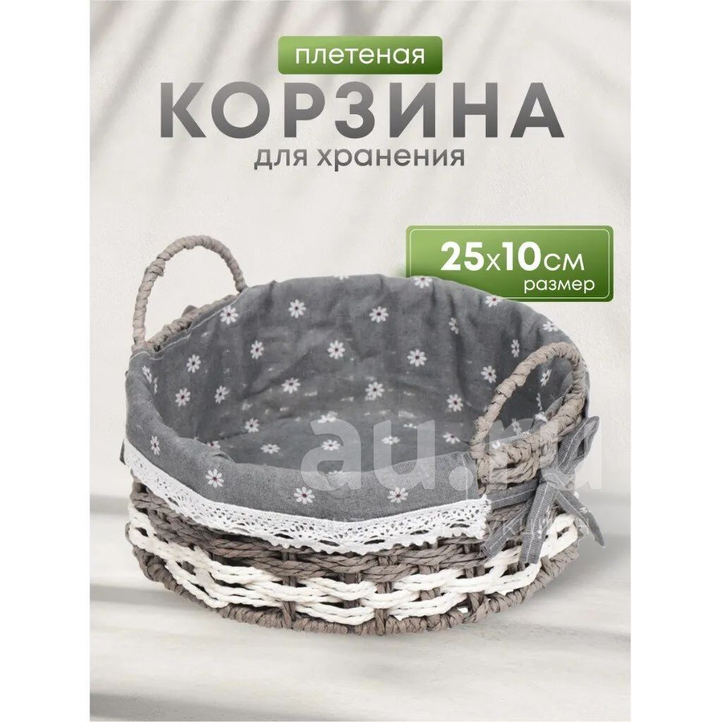 399руб.Корзина 25х10 см, круглая, плетеная, с металлическим каркасом и текст...