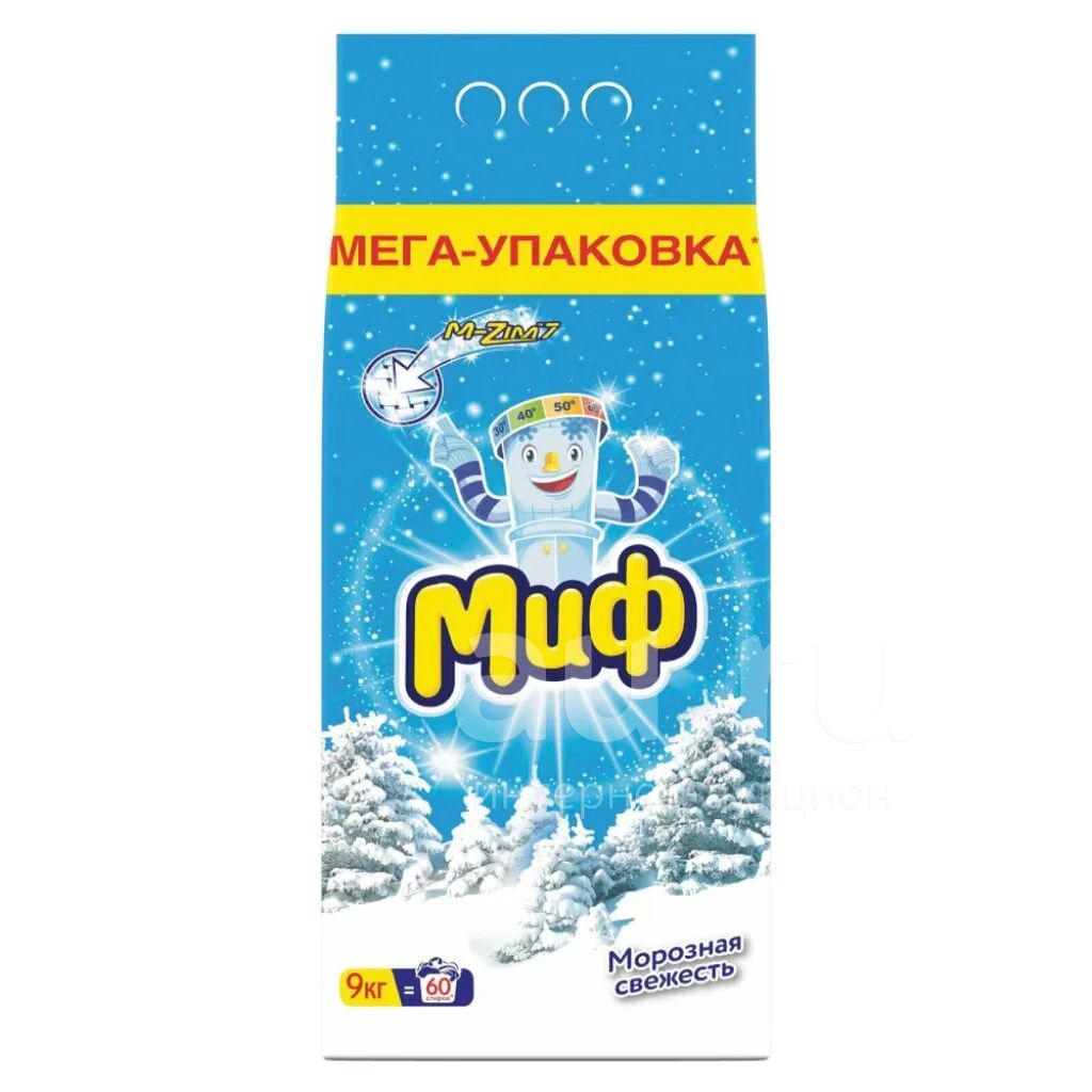 Стиральный порошок Миф, 9 кг, автомат, для белого белья, Морозная свежесть
