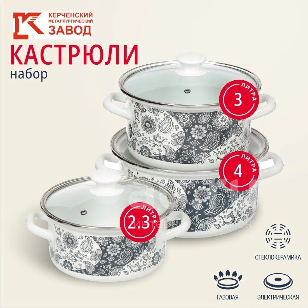 Набор посуды эмалированная сталь, 6 предметов, кастрюли 2.3,3,4л, Керченский металлургический завод, День и ночь-1-Экстра