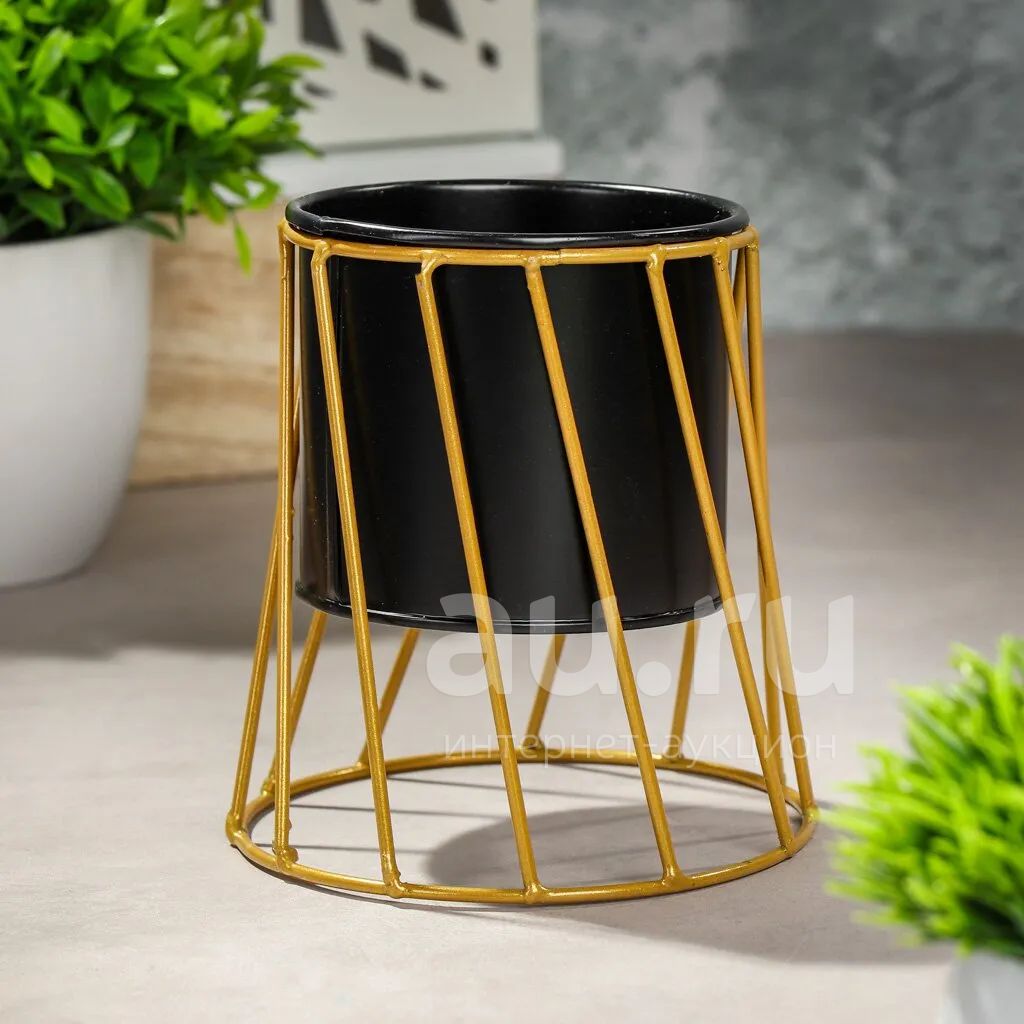 Кашпо металл, 1.5 л, 9.5х14х14 см, декоративное, черное, Y6-10465
