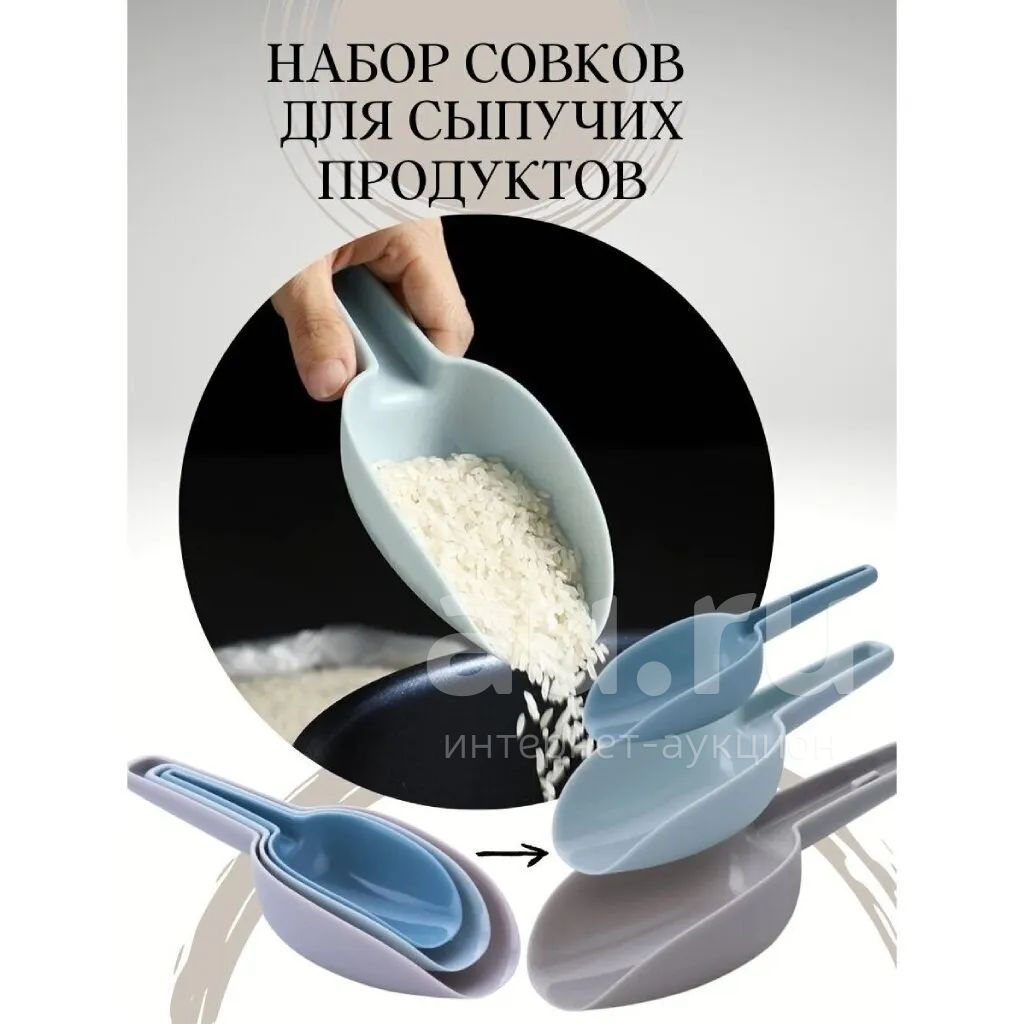 Набор пластиковых совков предназначен для измерения и дозирования сыпучих продуктов, таких как крупы, сахар, мука, соль и другое. С помощью набора можно точно отмерять нужное количество продукта, что особенно важно при приготовлении блюд по рецептам.
