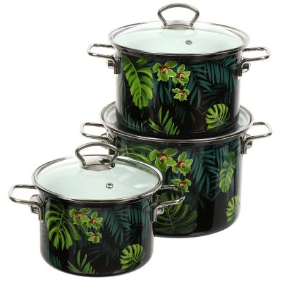 129руб.Набор посуды эмалированная сталь, 6 предметов, кастрюли 2.4,3.4,5 л, ...