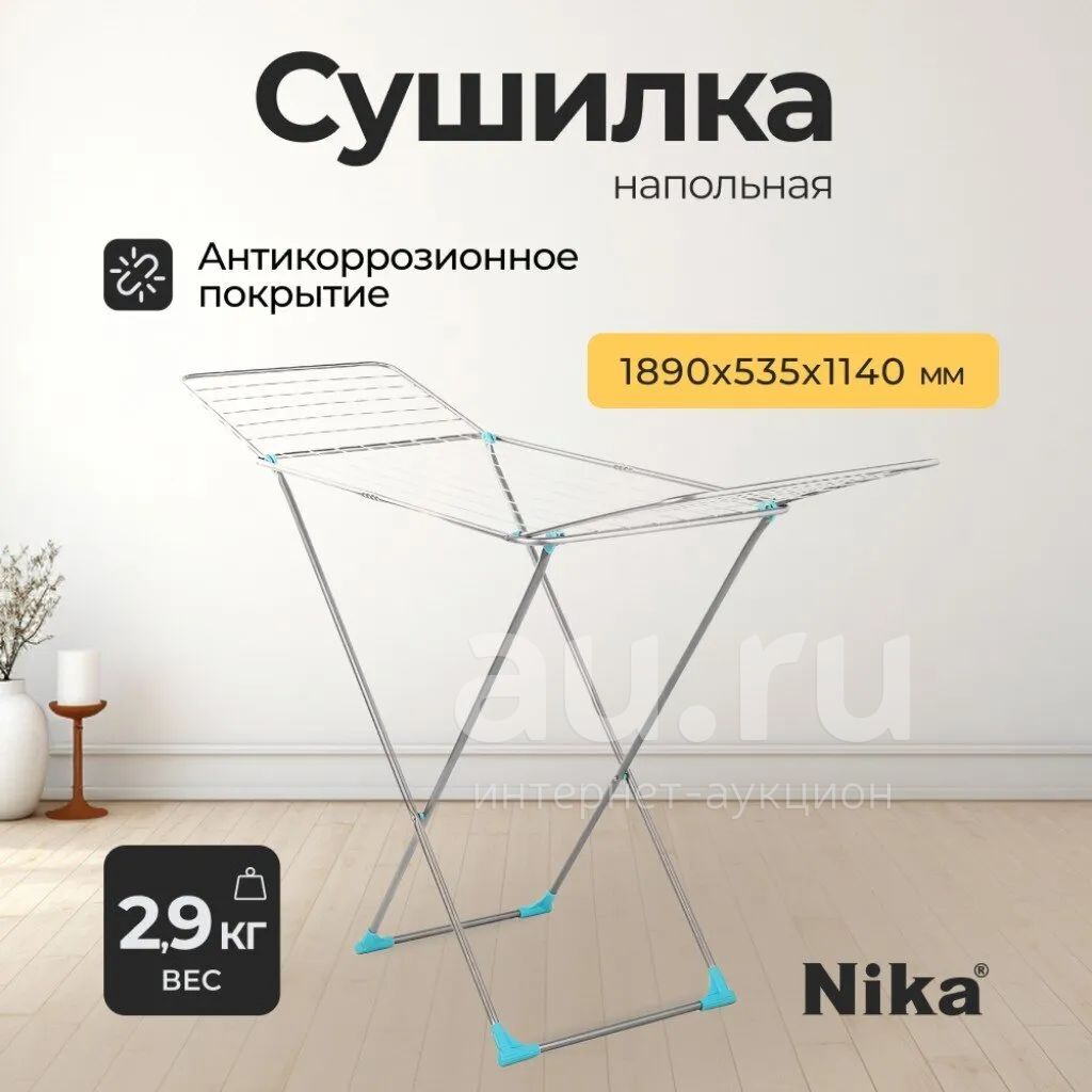 Сушилка для белья напольная, полотно 20 м, 189х53.5х114 см, складная, 22 прута, 17 кг, серебряная, Nika, СБ2