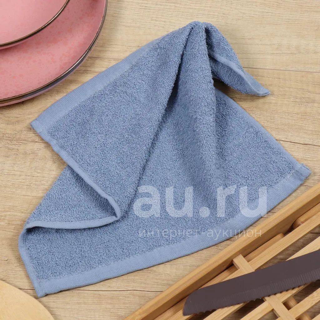 Полотенце кухонное махровое, 30х30 см, 380 г/м2, 100% хлопок, Barkas, Классика, серо-голубое, Узбекистан, 386791