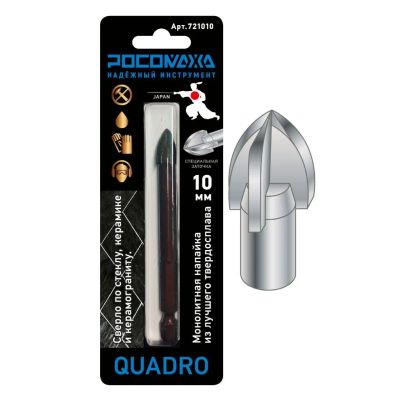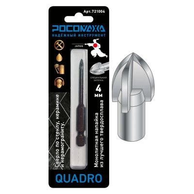 Сверло по керамограниту, керамике и стеклу, Росомаха, диаметр 14 мм, четырехгранник, 721014