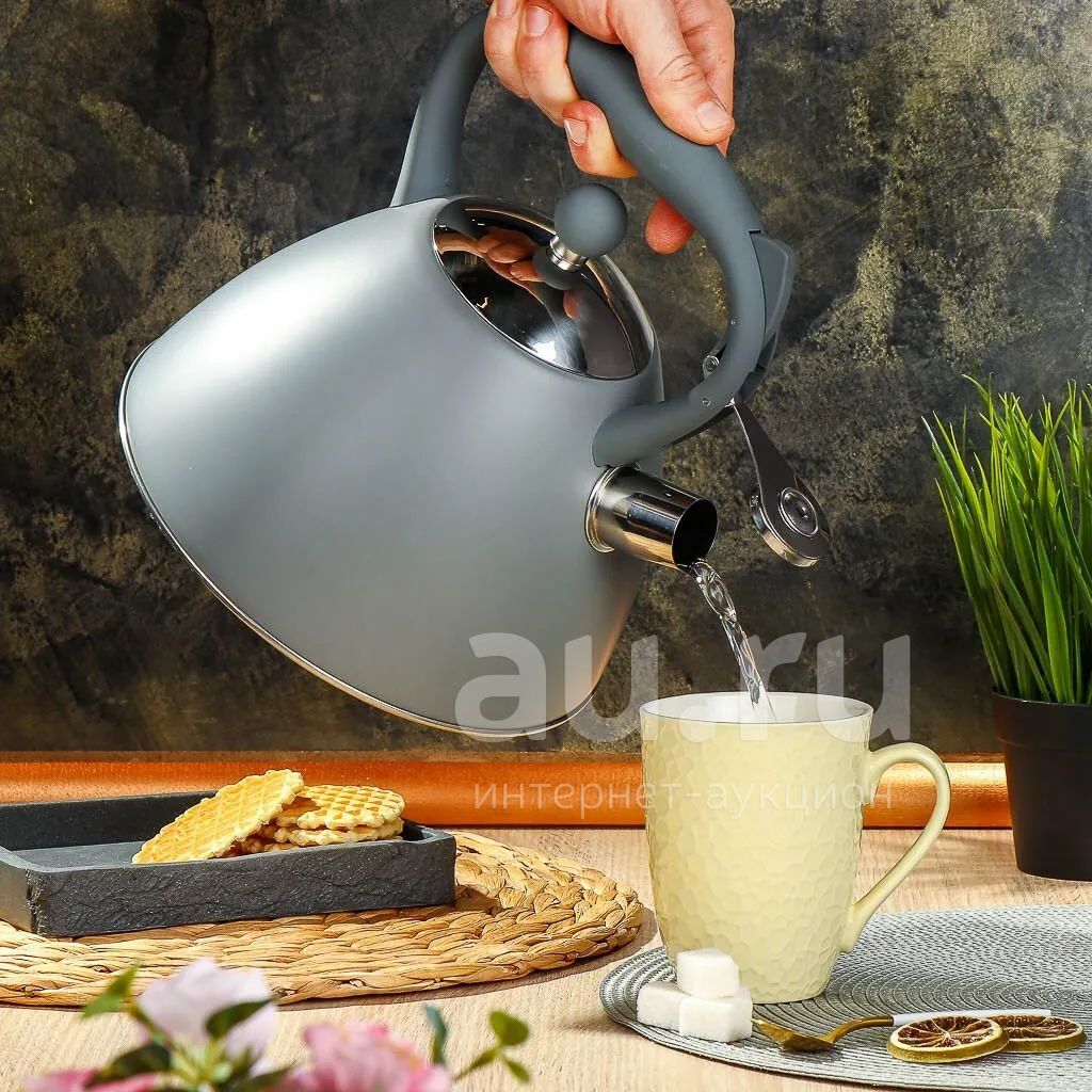 Чайник нержавеющая сталь, 2.7 л, со свистком, ручка бакелитовая, с силиконовым покрытием, Daniks, индукция, PR-2202
