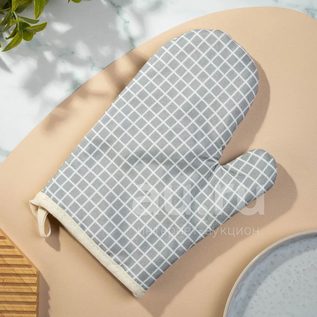 Прихватка-варежка 26х15 см, хлопок, полиэстер, Клетка серая, SPE35197-4 Y8-2912