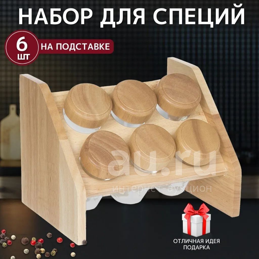 Набор для специй удобен и прост в использовании. Он вмещает 6 стеклянных банок. Емкости надолго сохранят первоначальный аромат пряностей или приправ. Модель выполнена из дерева.