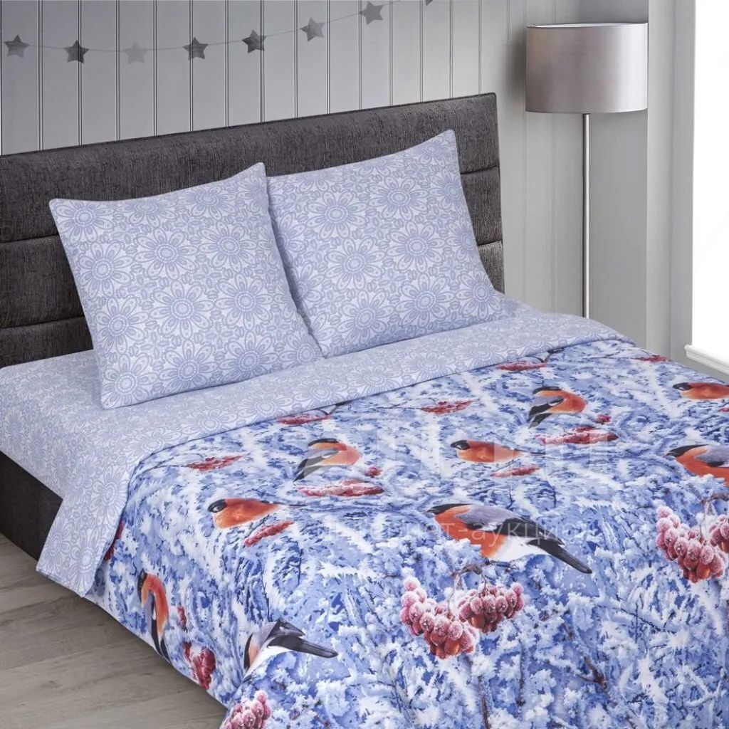 Постельное белье 2-спальное, простыня 200х215 см, 2 наволочки 70х70 см, пододеяльник 175х215 см, АртПостель, бязь, Снегири