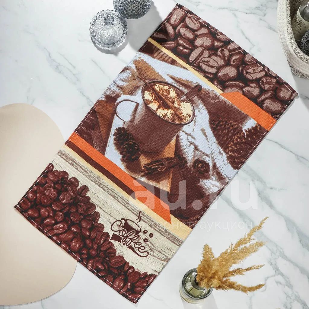 Полотенце кухонное вафельное, 35х60 см, 150 г/м2, 100% хлопок, Кофе, Узбекистан