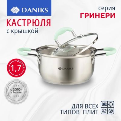1 490руб.Кастрюля нержавеющая сталь, 2.7 л, крышка стекло, DNN3, SD-A17-18