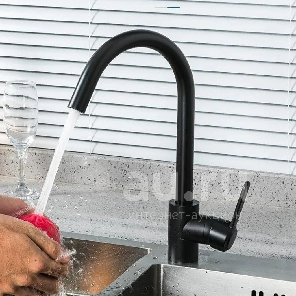 Стильный черный смеситель Frud R42052-12: современный дизайн, долговечная нержавеющая сталь и высокий излив для комфортной работы на кухне.