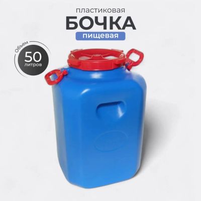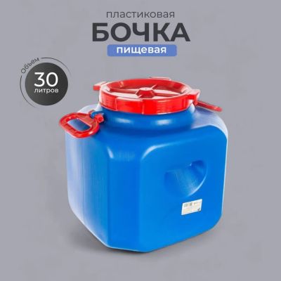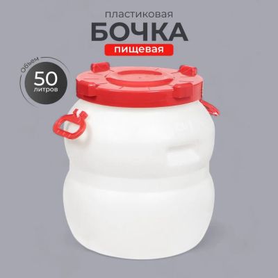 Бочка изготовлена из прочного пищевого пластика и предназначена для транспортировки и хранения пищевых жидкостей.