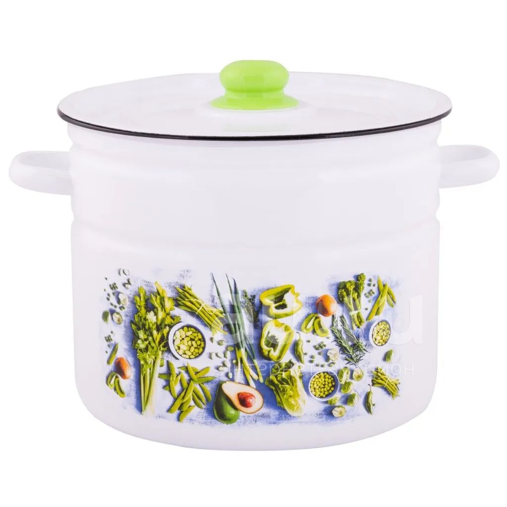 Кастрюля эмалированная сталь, 9 л, с крышкой, крышка сталь, цилиндрическая, Appetite, Свежая зелень, 1с200с, индукция