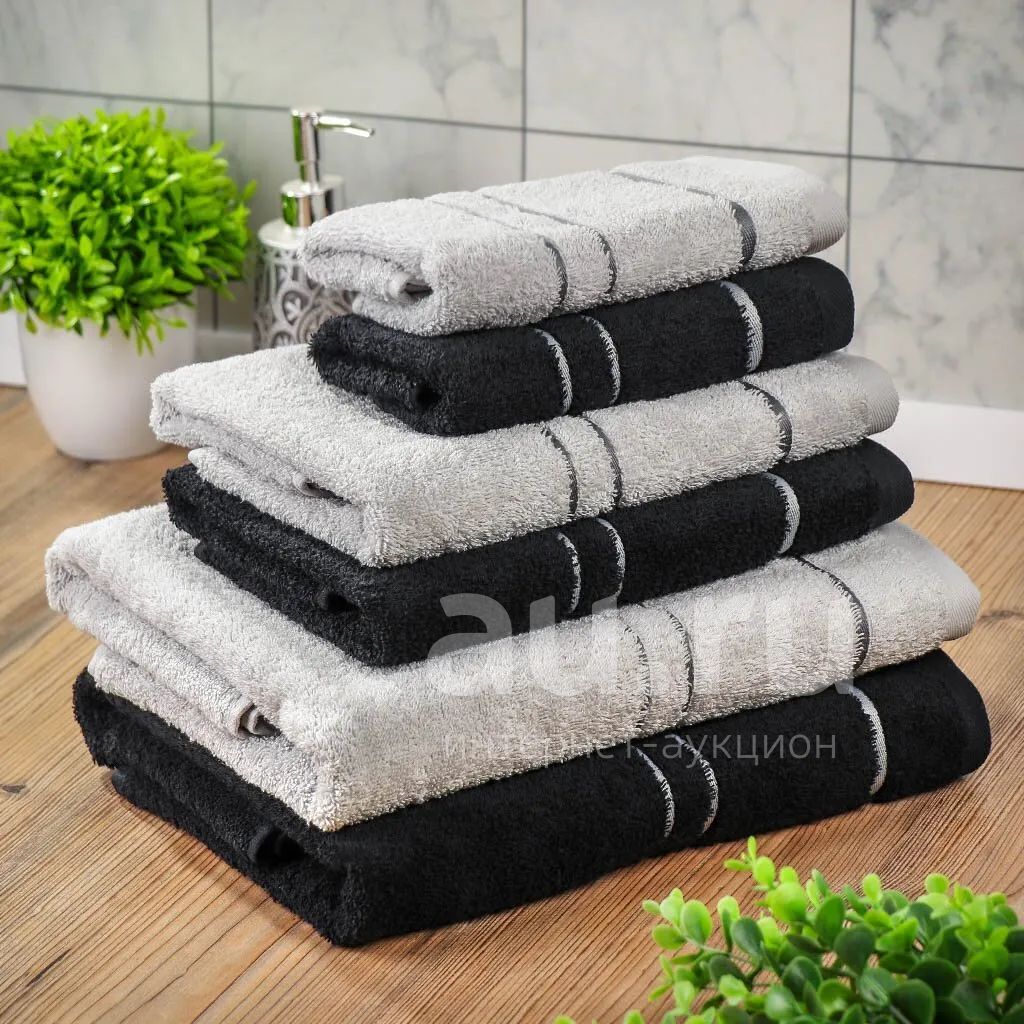 Набор полотенец 6 шт, 30х60-2шт, 50х80-2шт, 70х130-2шт см, 100% хлопок, 420 г/м2, Barkas, Азия, черный, светло-серый, Узбекистан