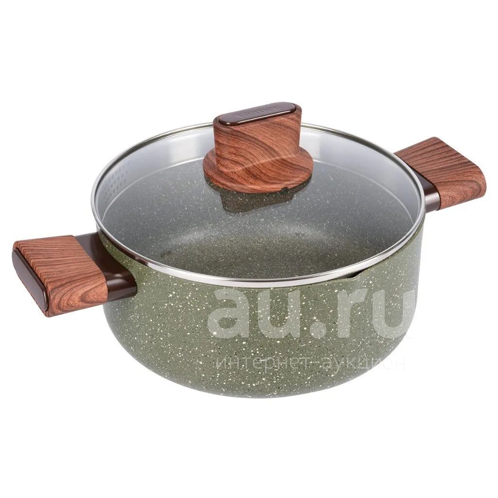 Кастрюля алюминий, антипригарное покрытие, 2.8 л, с крышкой, крышка стекло, круглая, Werner, Organic Forest Style, 51457, индукция
