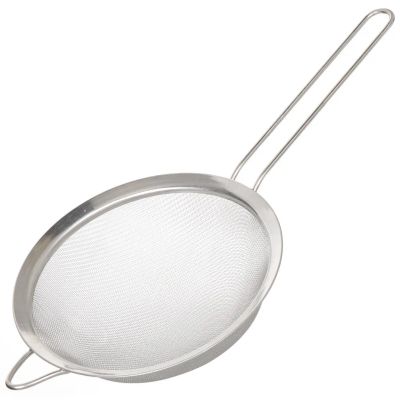 Сито из нержавеющей стали подойдет для просеивания муки, пудры, какао, кофе и других мелких сыпучих продуктов. С помощью большого сита Вы легко украсите сахарной пудрой выпечку, подойдет также для протирки ягоды, промывки фруктов и овощей, профильтруете любую жидкость от мякоти и ненужных остатков. Сито можно использовать для сливания и промывания макарон, риса и других круп.