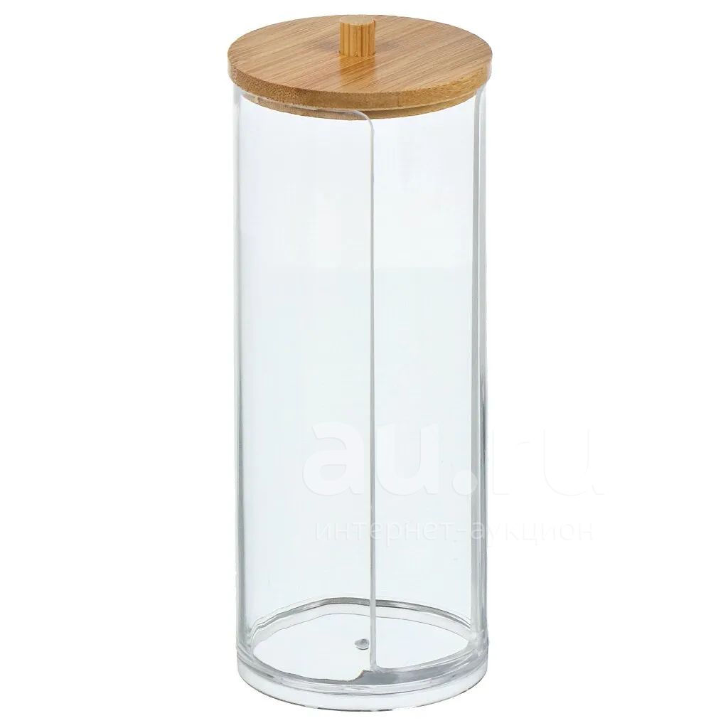 Контейнер для ватных дисков, 7.5х7.5х19 см, бамбуковая крышка, пластик, прозрачный, Y4-7849