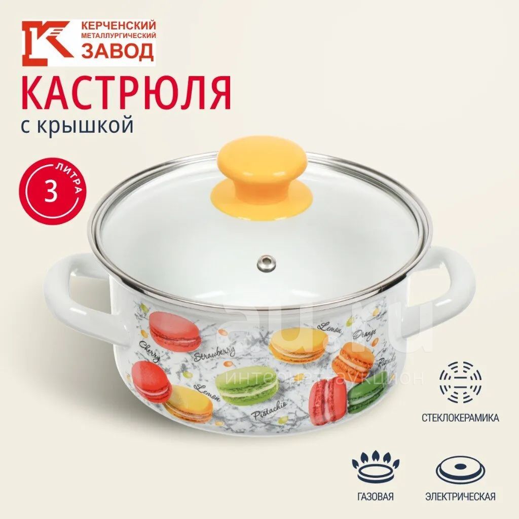 Кастрюля эмалированная сталь 3 л с крышкой из стекла — идеальный выбор для семьи: долговечность, удобство, стильный дизайн «Цветное печенье».