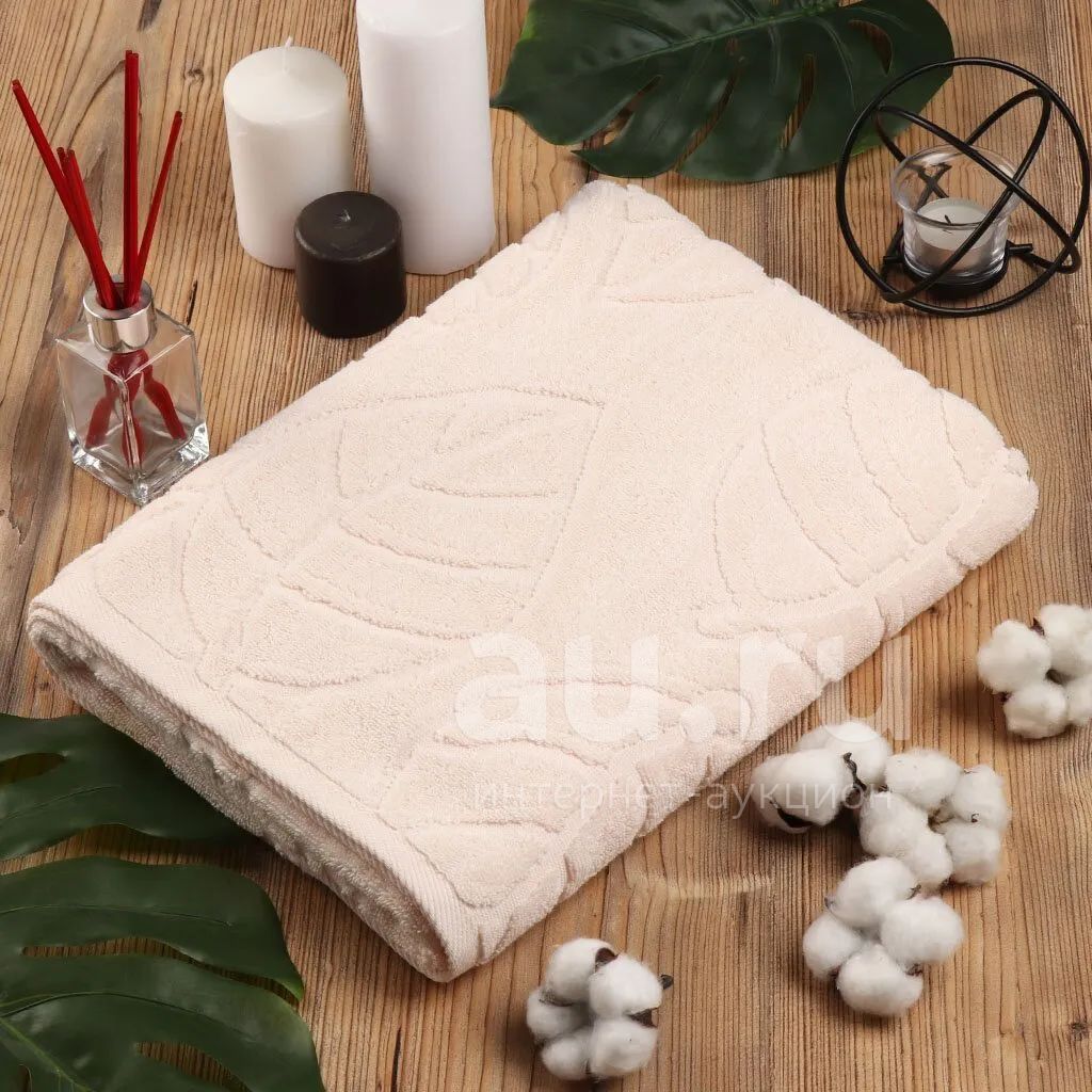Полотенце банное 50х90 см, 100% хлопок, 450 г/м2, жаккард, Листопад-2 5562, Авангард, миндальный крем, 291, Россия