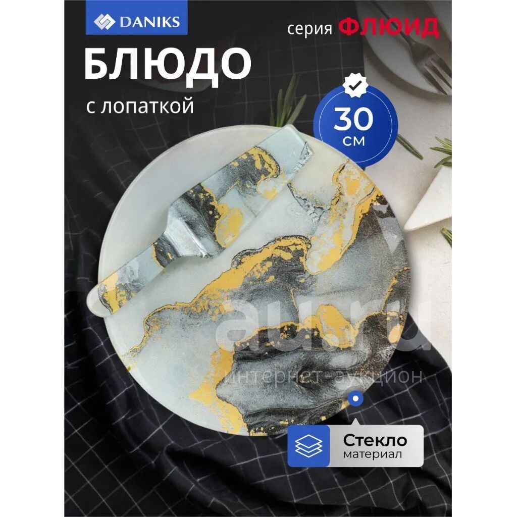 Блюдо стекло, 30 см, круглое, с лопаткой, Daniks, Флюид