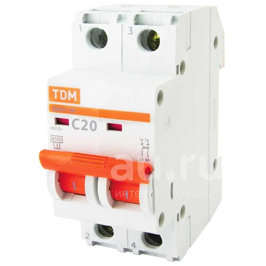 Автоматический выключатель TDM Electric, ВА47-29, 2 полюса, 20, 4.5 кА, С, SQ0206-0094
