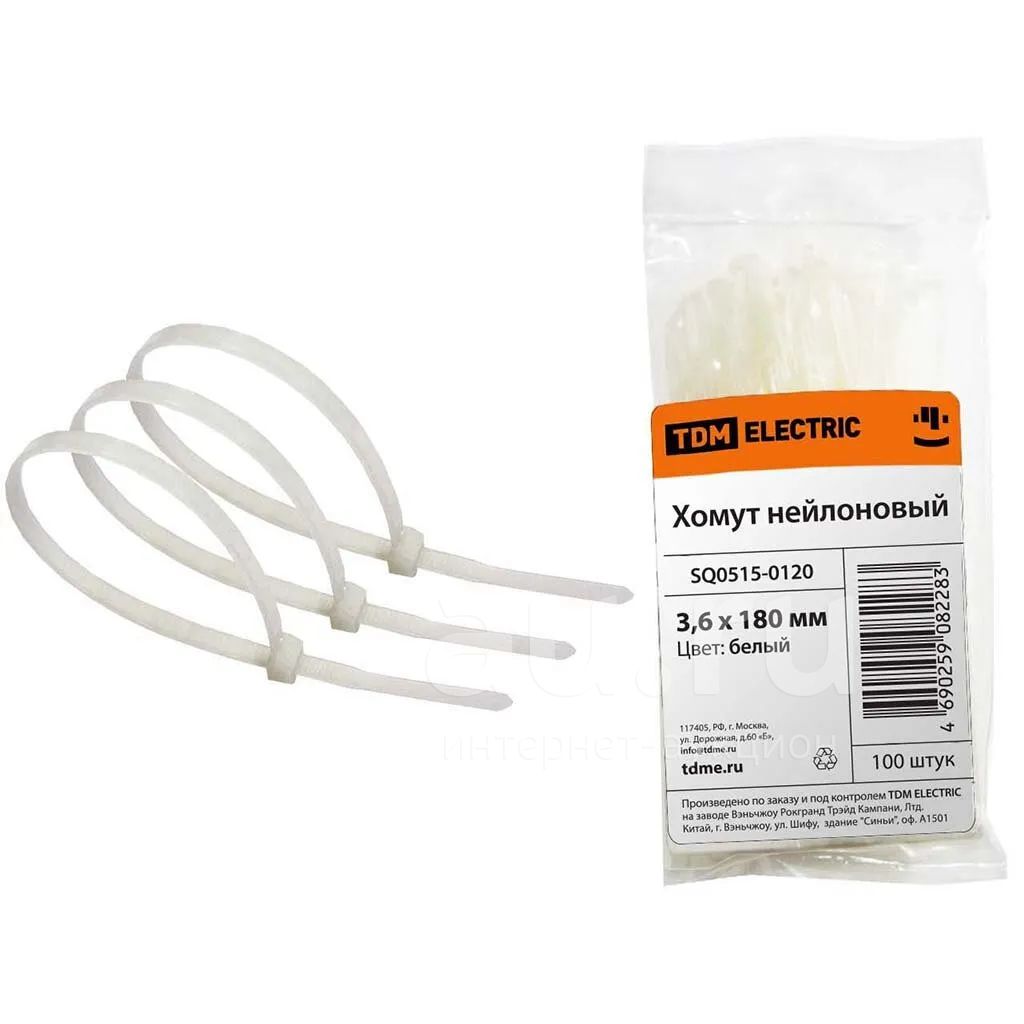 Хомут стяжной кабельный, 3.6х180 мм, нейлон, 100 шт, белый, TDM Electric, SQ0515-0120