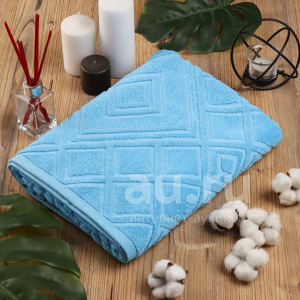 Полотенце банное 70х140 см, 100% хлопок, 450 г/м2, жаккард, Ромбы 4443, Авангард, голубое, 62, Россия, С81-ЮА