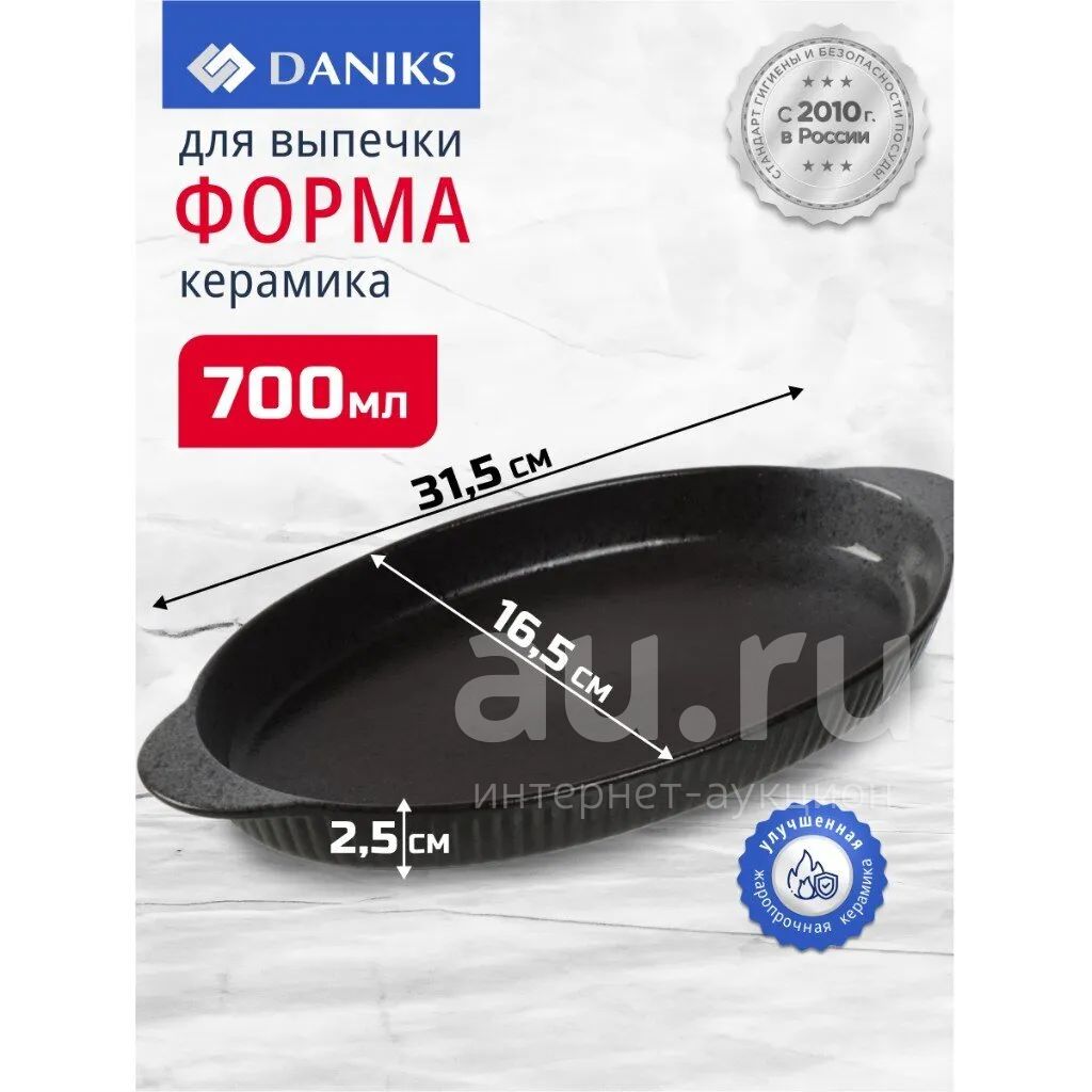 Форма для выпечки керамика, 31.5х16.5х2.5 см, 0.7 л, овальная, темная, Daniks, Гранит, Y4-8724