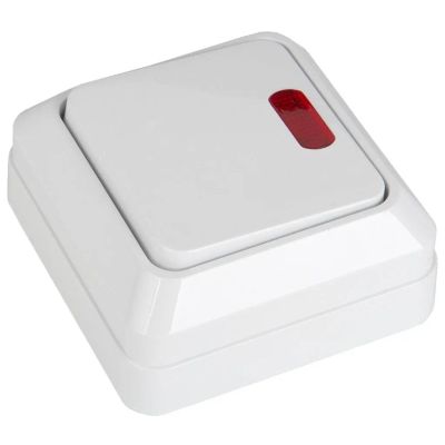 Выключатель открытой установки, одноклавишный, 10 А, 250 В, пластик, подсветка, IP20, белый, IEK, ВС20-1-1-ХБ Glory, EVH11-K01-10