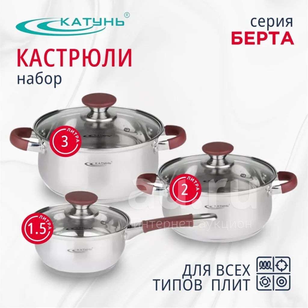 Набор посуды из нержавеющей стали Катунь Берта: 6 предметов для индукции и всех типов плит — идеальный выбор для дома и дачи, выгодная цена