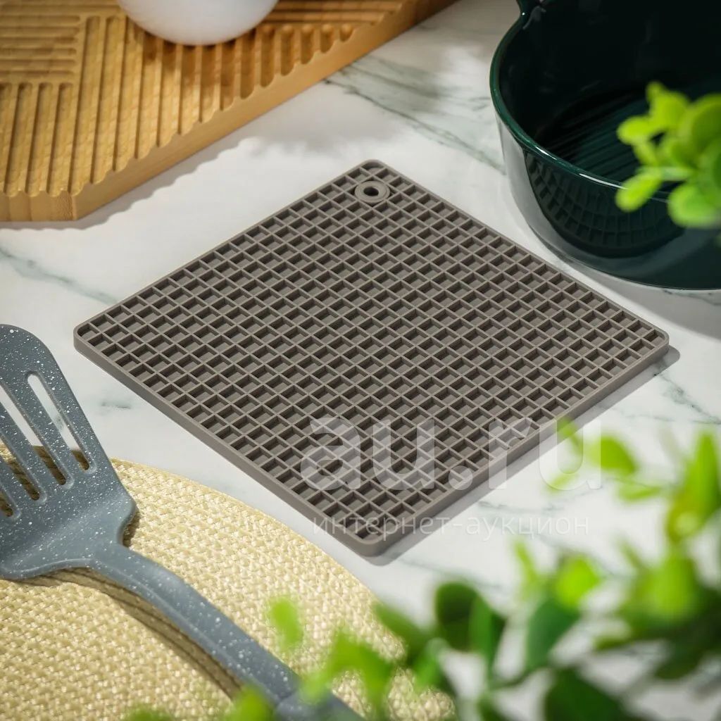 Подставка под горячее, силикон, квадратная, 17.2 см, серая, Y4-8387