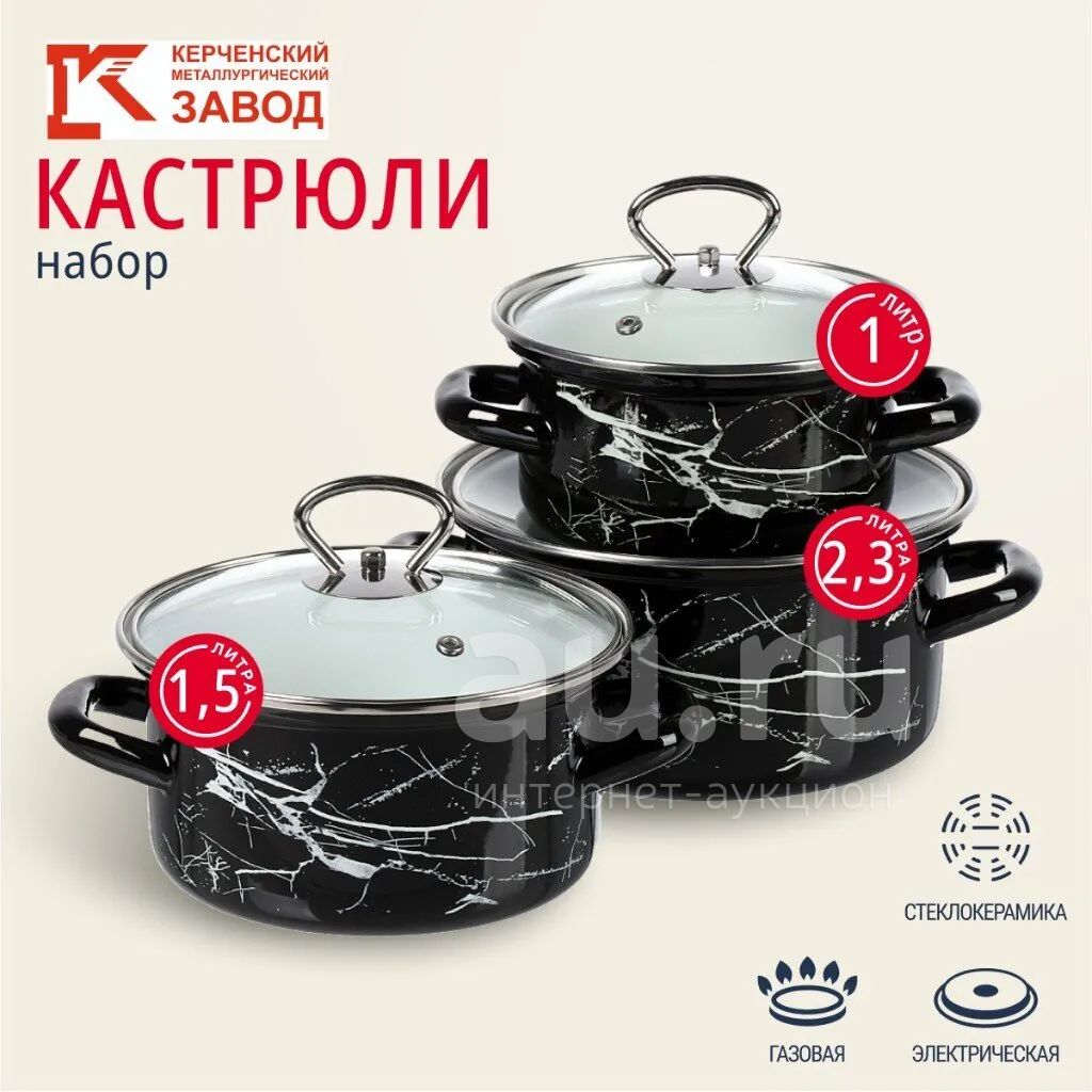 129руб.Набор посуды эмалированная сталь, 3 предмета, 1, 1.5, 2.3 л, МП, Керч...
