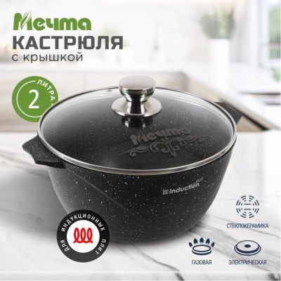 90руб.Кастрюля алюминий, антипригарное покрытие, 10 л, крышка стекло, Мечта, Гранит, 410701