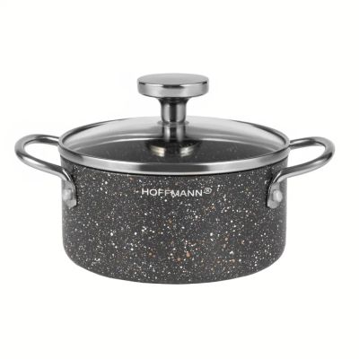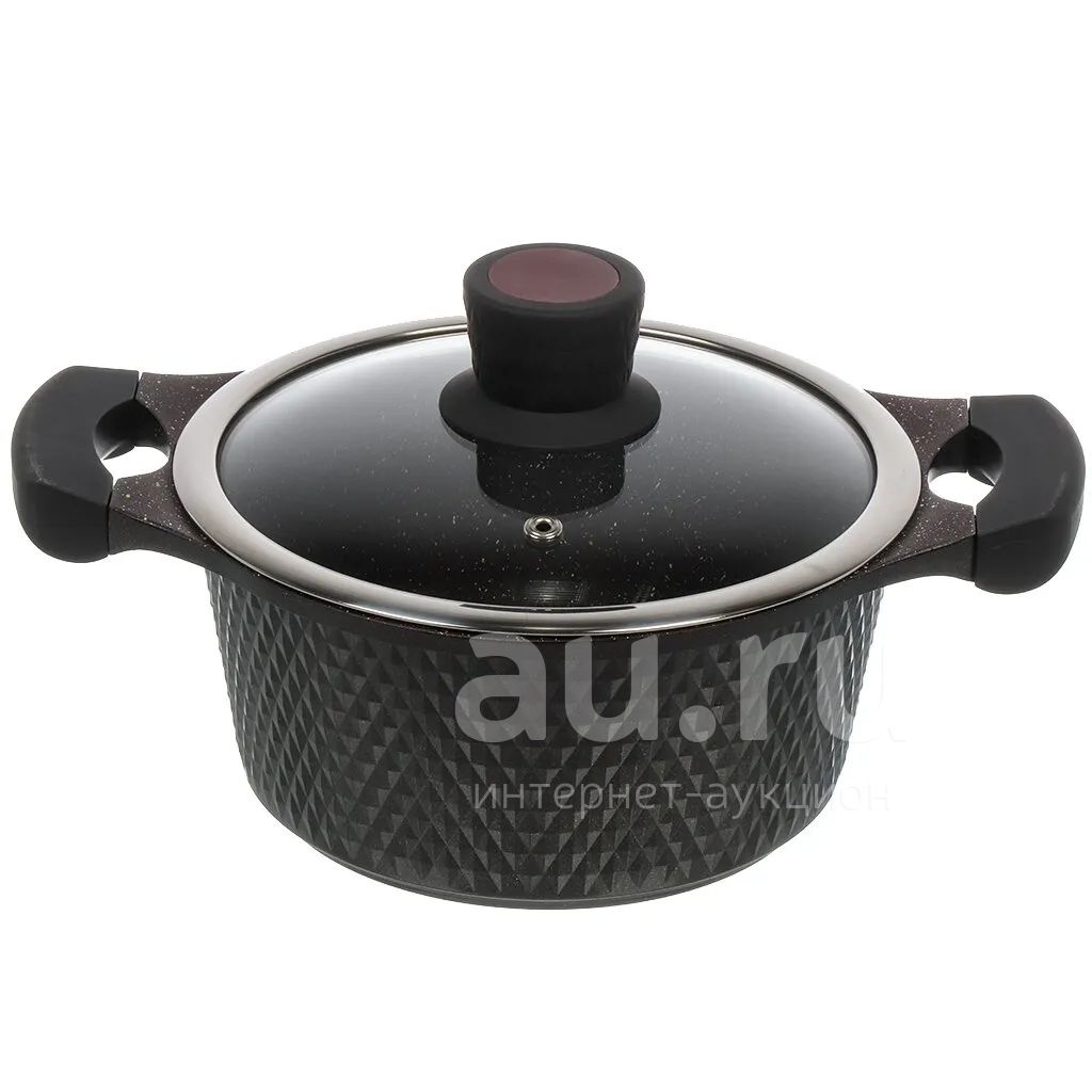 Кастрюля алюминий, антипригарное покрытие, 2.5 л, с крышкой, MercuryHaus, Гранит, 1821-MC, черная, индукция