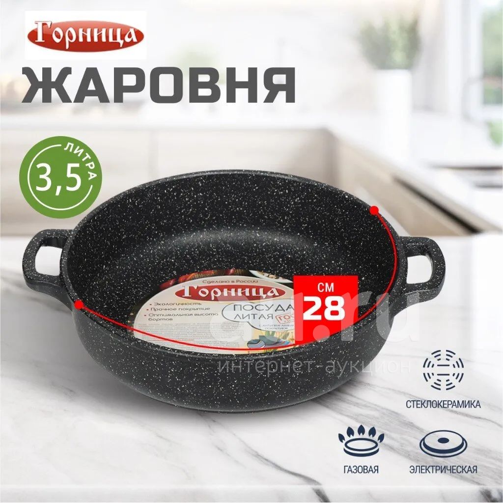 299руб.Жаровня алюминий, 28 см, 3.5 л, антипригарное покрытие, Горница, Гран...