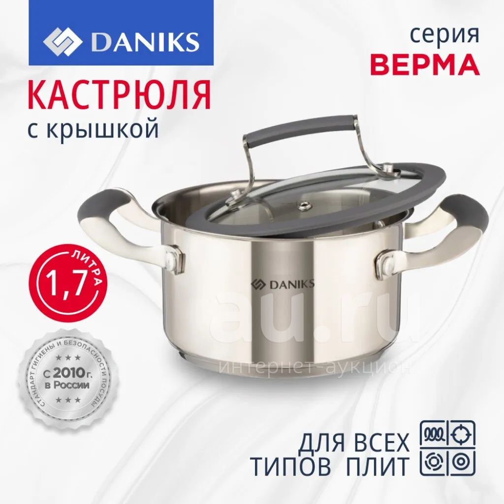 Кастрюля нержавеющая сталь, 1.7 л, крышка стекло, Daniks, Верма, CW-S071-16, индукция