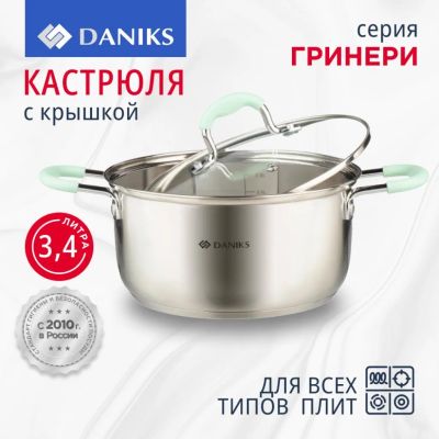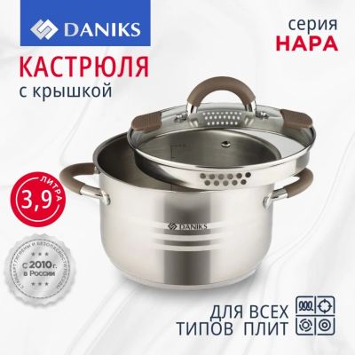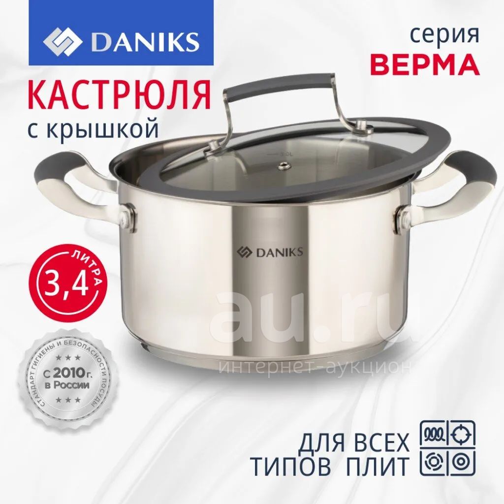 Кастрюля нержавеющая сталь, 3.4 л, с крышкой, крышка стекло, Daniks, Верма, CW-S071-20, индукция