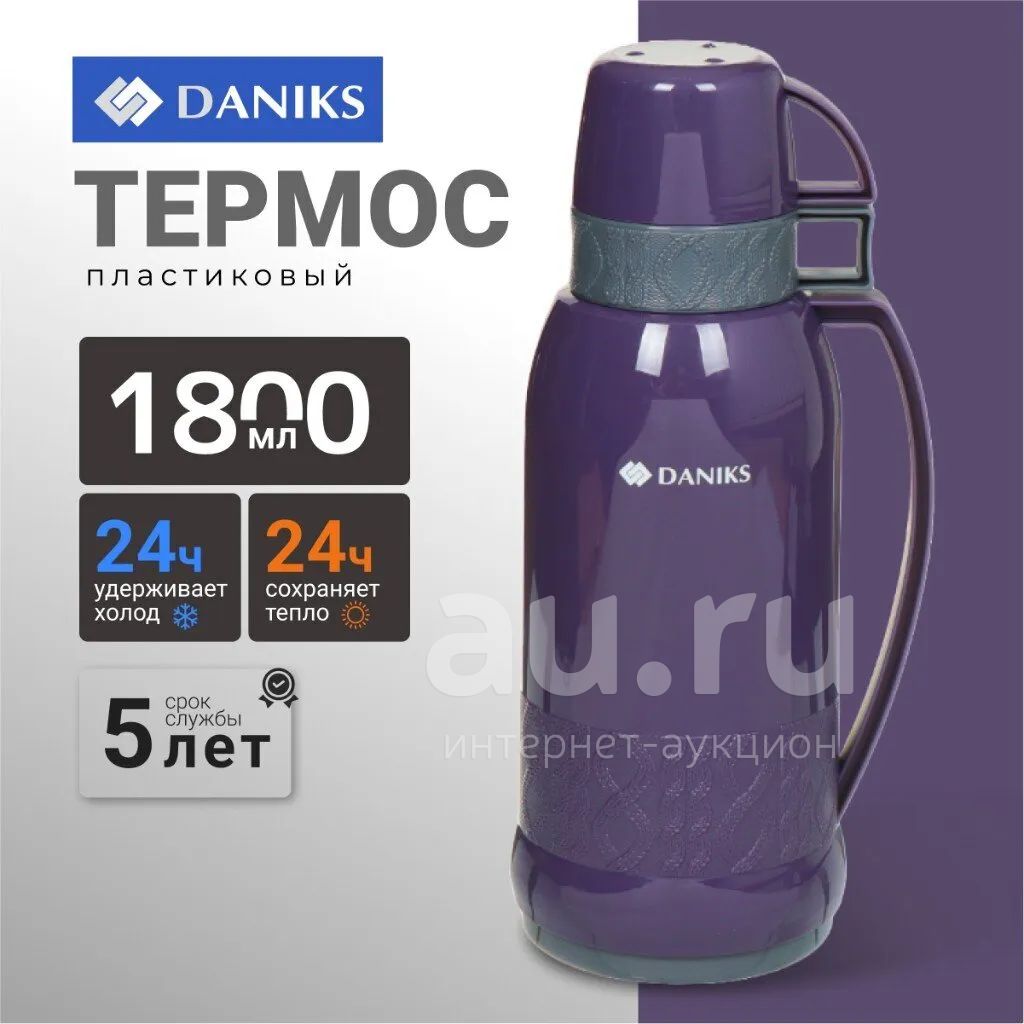 212руб.Термос пластик, 1.8 л, универсальная горловина, Daniks, колба стекло,...
