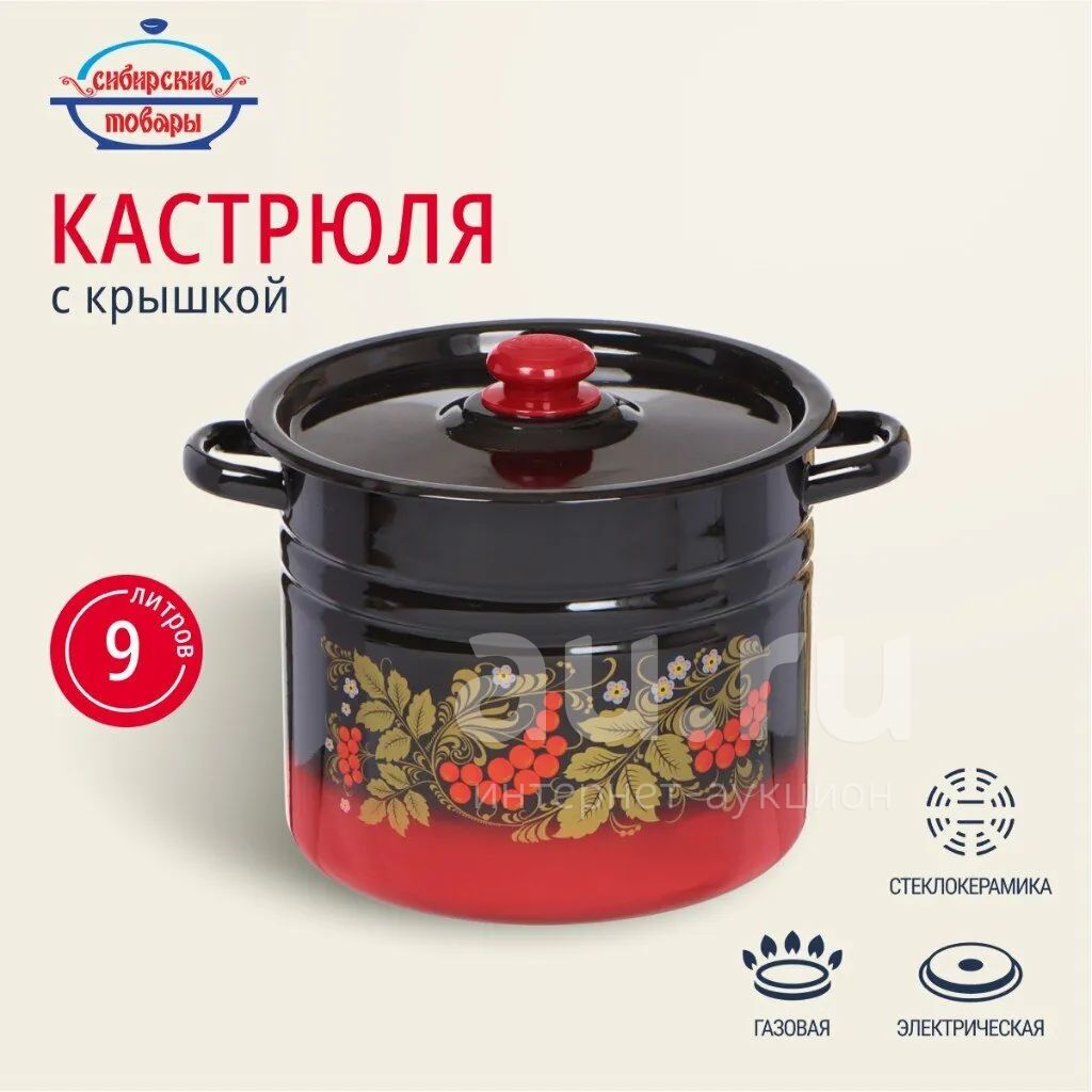 Кастрюля эмалированная 9 л «Сибирские товары» — идеальное решение для большой семьи и дачи: надёжная, стильная, с крышкой, подходит для газовых и электрических плит.