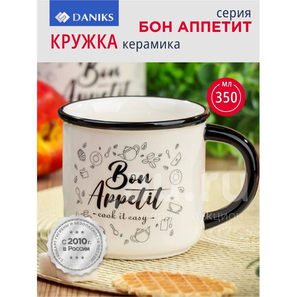 Керамическая кружка Daniks «Бон Аппетит» 350 мл — стильный выбор для дома и офиса: подходит для СВЧ, легко моется, универсальный дизайн для любого интерьера.